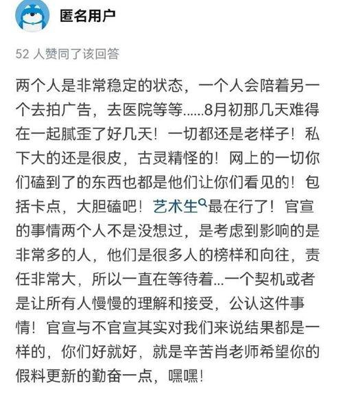 当然,娱乐圈的婚姻生活也是大家关注的焦点。博肖知乎上的一位用户爆料称,某对明星夫妻其实早已名存实亡,但为了维持形象,他们不得不在公众面前装作恩爱。这个爆料一出,立刻引发了网友们的热议,大家纷纷猜测这对明星夫妻是否真的已经走到了尽头。